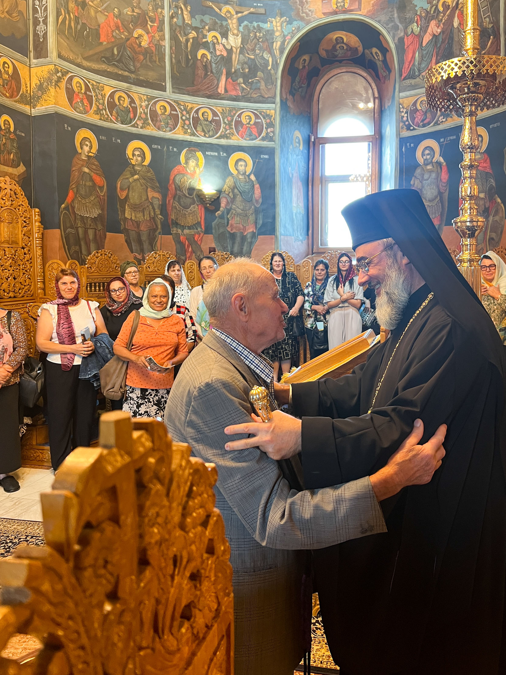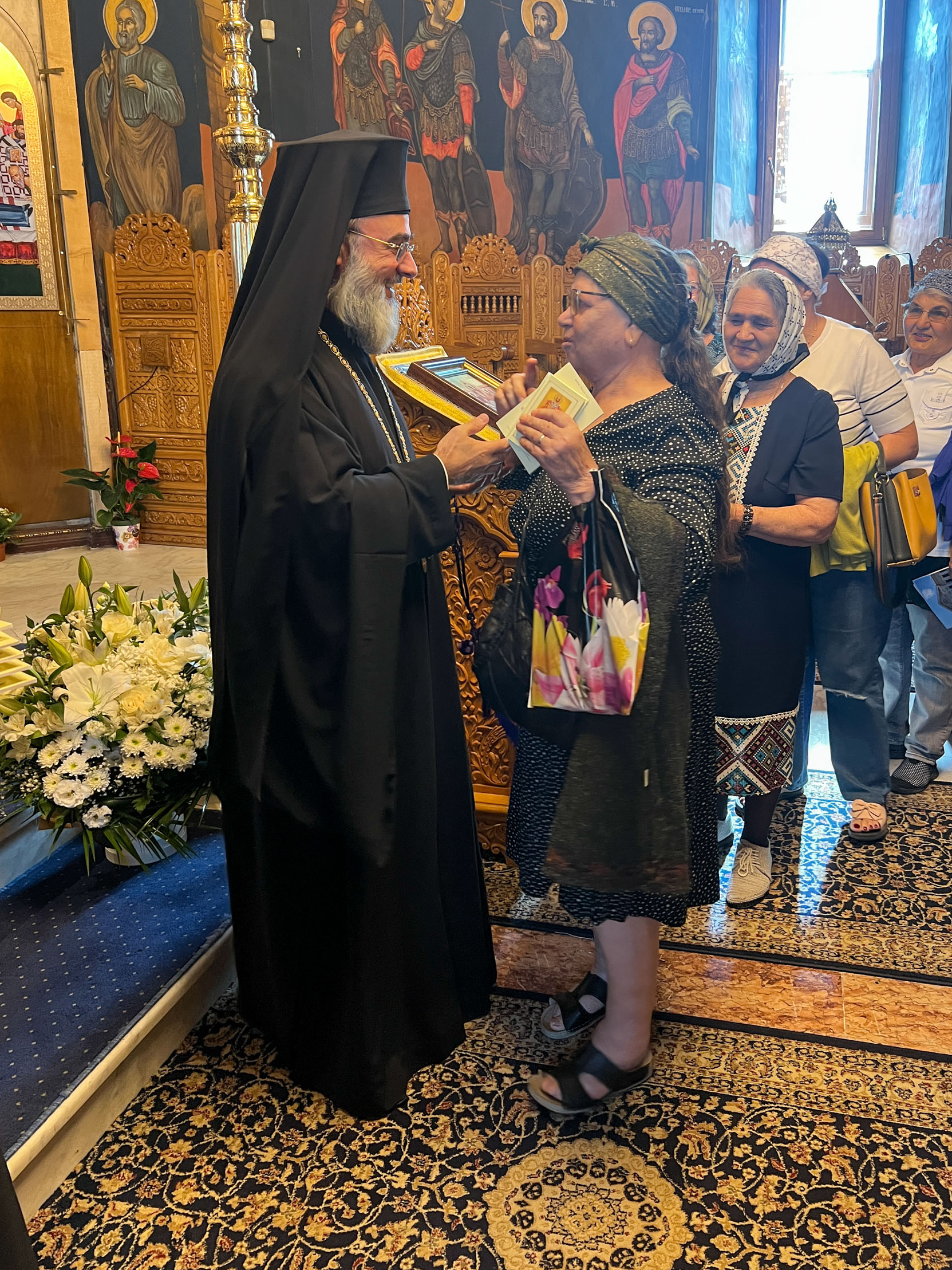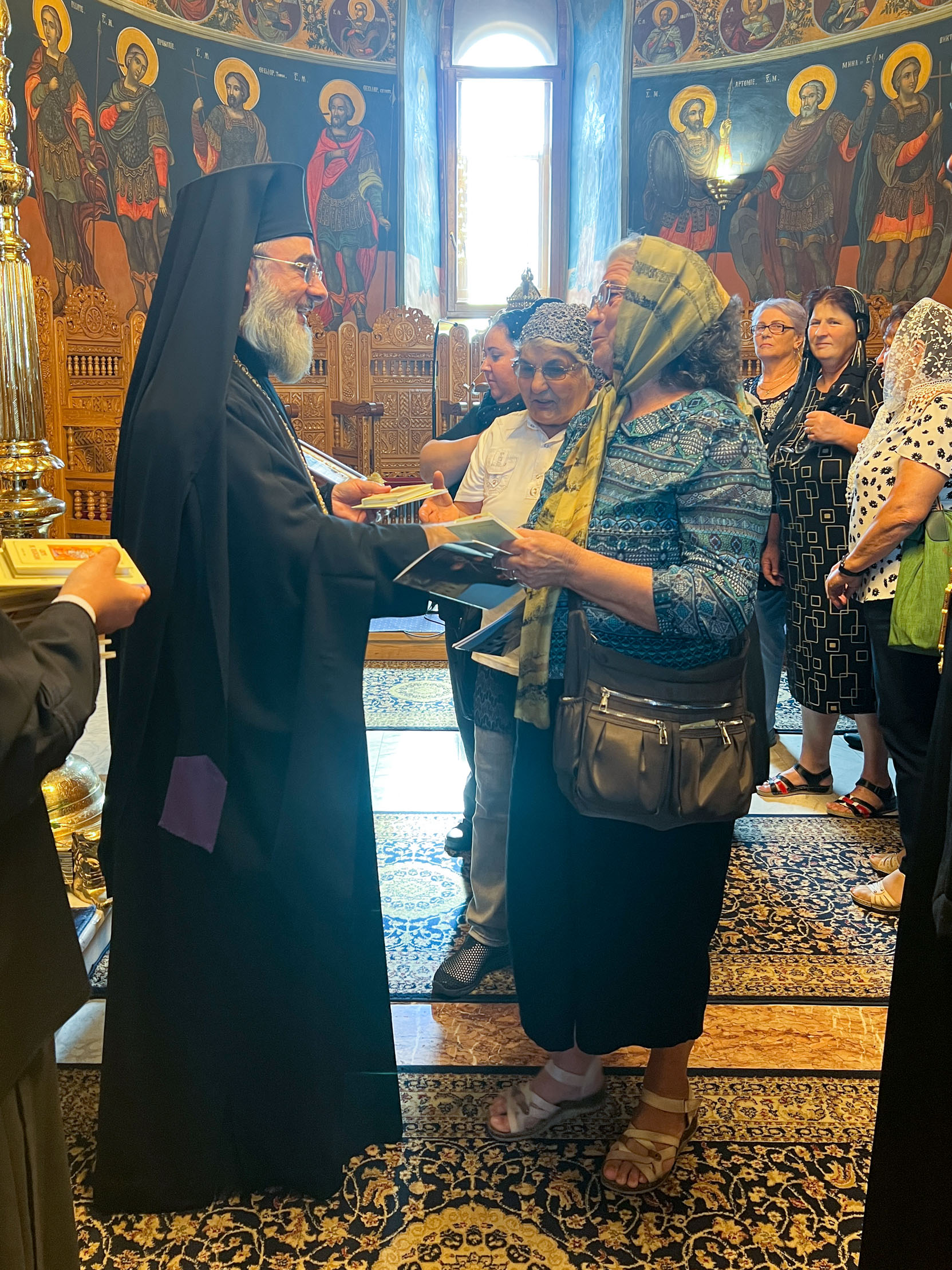 Pelerinii au poposit mai întâi la Catedrala Arhiepiscopală „Înălțarea Domnului”, unde au fost întâmpinați de părintele consilier Dan Necula, care le-a prezentat istoria lăcașului de cult și le-a împărțit iconițe. În continuare, au vizitat Muzeul Bisericesc Eparhial, iar apoi au fost primiți de Înaltpreasfințitul Părinte Ciprian în Catedrala Voievodală „Adormirea Maicii Domnului”. Cu acest prilej, Ierarhul le-a adresat un cuvânt de binecuvântare și de încurajare, dăruindu-le cărți de rugăciuni și broșuri religioase.