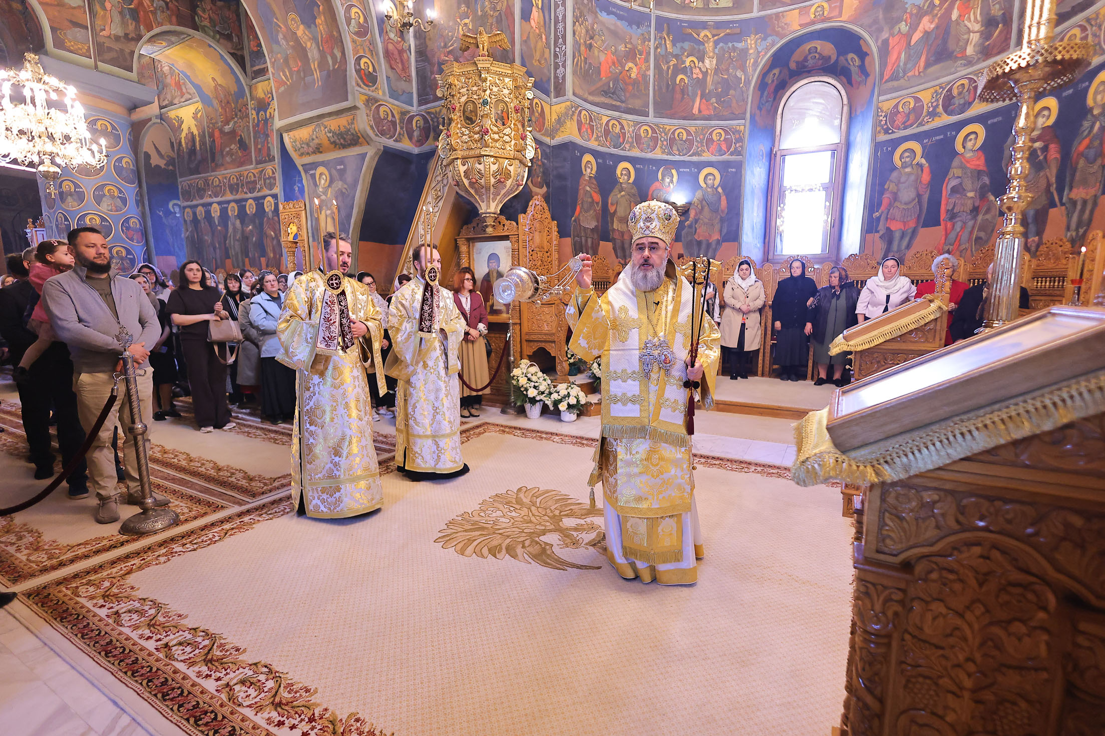 În omilia rostită cu acest prilej, Părintele Arhiepiscop Ciprian a evidențiat rolul fundamental al Sfintelor Femei Mironosițe, primele vestitoare ale Învierii, numindu-le „apostoli ai Apostolilor” datorită fidelității și curajului lor neclintit. Înaltpreasfinția Sa a explicat că Mântuitorul le-a răsplătit cu darul bucuriei, o putere harică ce transformă interior omul, făcându-l capabil să depășească orice teamă sau scepticism. De asemenea, Chiriarhul a subliniat că această duminică este o adevărată sărbătoare a femeii creștine, evidențiind jertfelnicia mamelor și a tuturor celor care slujesc „biserica cea mică” de acasă și comunitățile parohiale. În încheiere, Arhipăstorul locului a punctat importanța misiunii noilor clerici hirotoniți, care, asemenea Apostolilor, sunt chemați să mărturisească taina iubirii jertfelnice a lui Hristos, singura capabilă să aducă pacea într-o lume tulburată de conflicte.