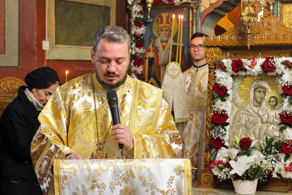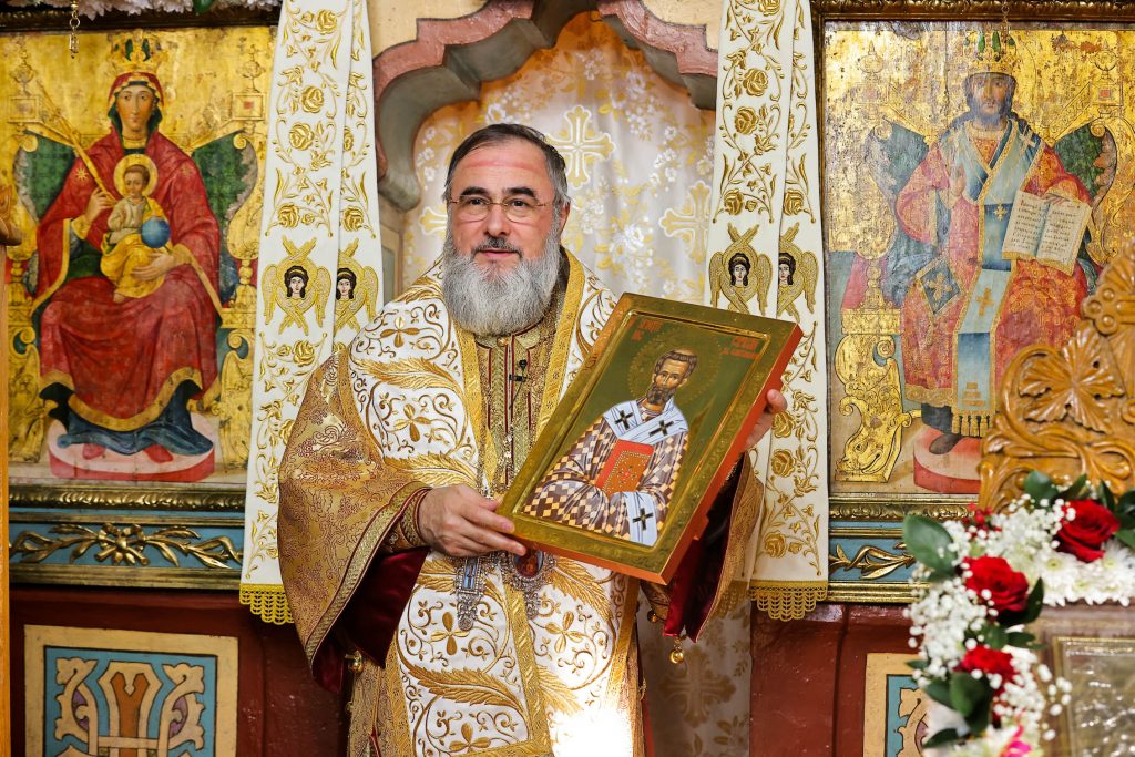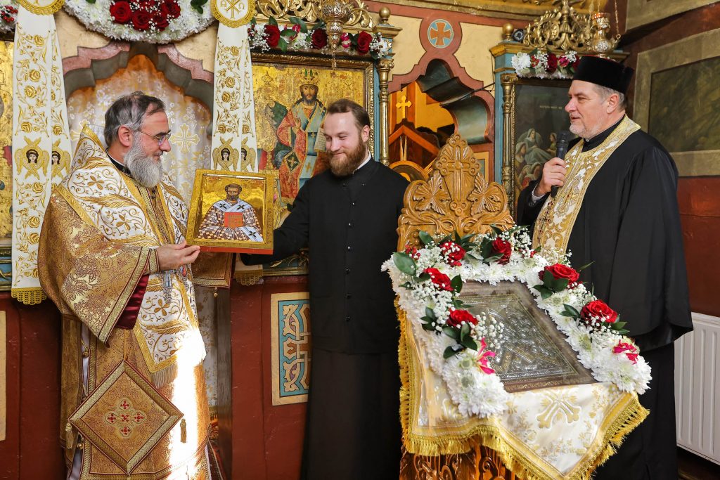 Părintele paroh Valentin Puiu i-a mulțumit Arhipăstorului Buzăului și Vrancei pentru bucuria adusă enoriașilor prin slujba arhierească și i-a dăruit o icoană a Sfântului Sfințit Mucenic Ciprian, Episcopul Cartaginei.
