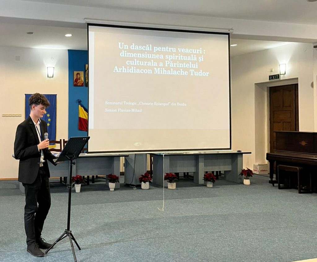 Tot în cadrul simpozionului, elevul Flavian Simion, din clasa a X-a, a susținut eseul „Un dascăl pentru veacuri: dimensiunea spirituală și culturală a Părintelui Arhidiacon Mihalache Tudor”, dedicat unei personalități marcante a Seminarului din Buzău – fost elev, director și profesor al instituției timp de patru decenii. Lucrarea a evidențiat vocația pedagogică a părintelui Mihalache Tudor, care a înțeles educația teologică drept o împletire între rigoarea intelectuală și formarea caracterului creștin.