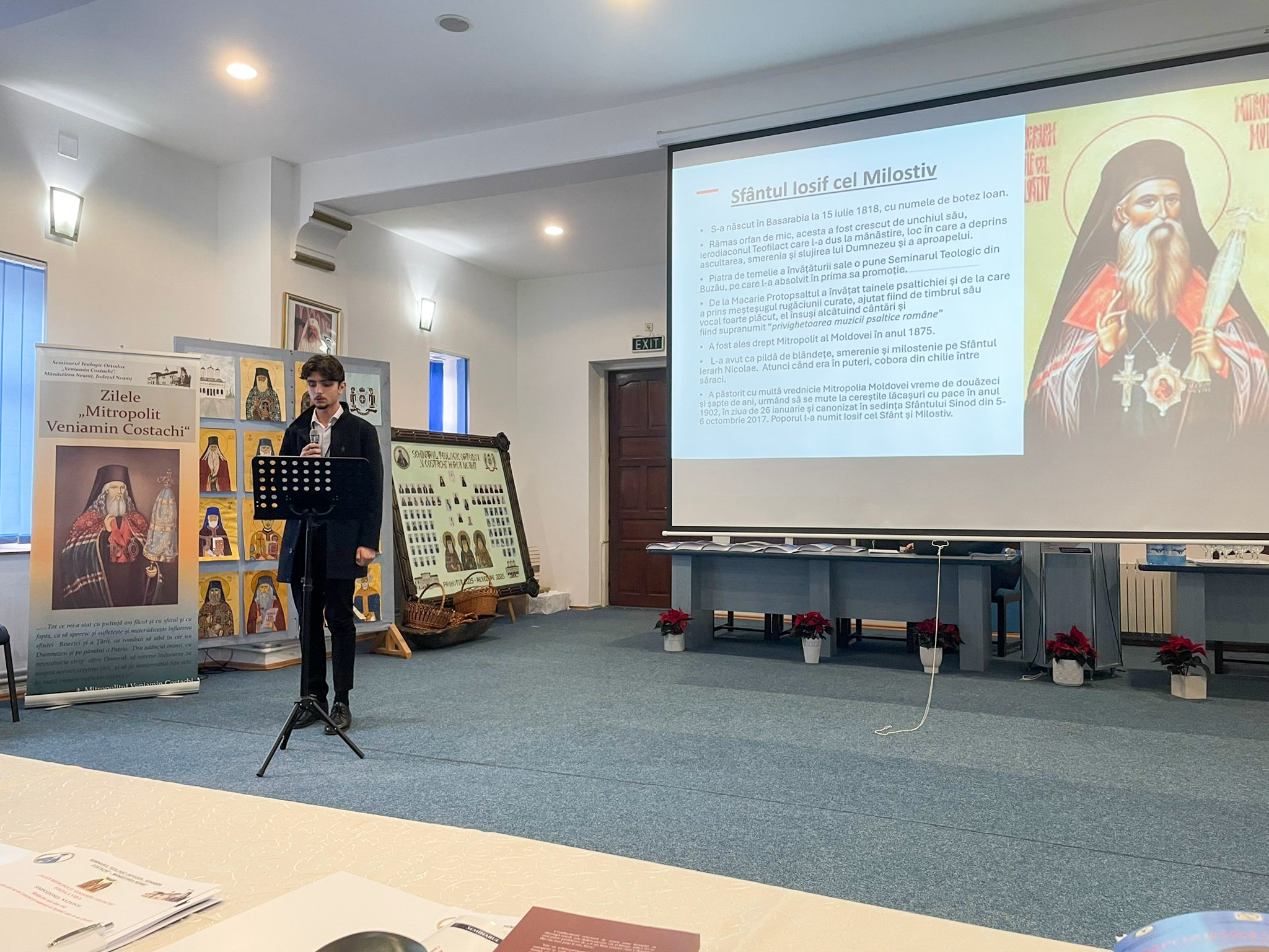 Elevul Decebal Staicu, din clasa a X-a, coordonat de domnul profesor Valentin Andronache, a prezentat o lucrare despre Sfântul Cuvios Dionisie de la Colciu, marele duhovnic român din Muntele Athos. Lucrarea a reliefat dimensiunea teologiei trăite, arătând că adevărata mărturisire a credinței se face prin smerenie, ascultare și rugăciune neîncetată, într-o viață discretă, dar profund roditoare duhovnicește.